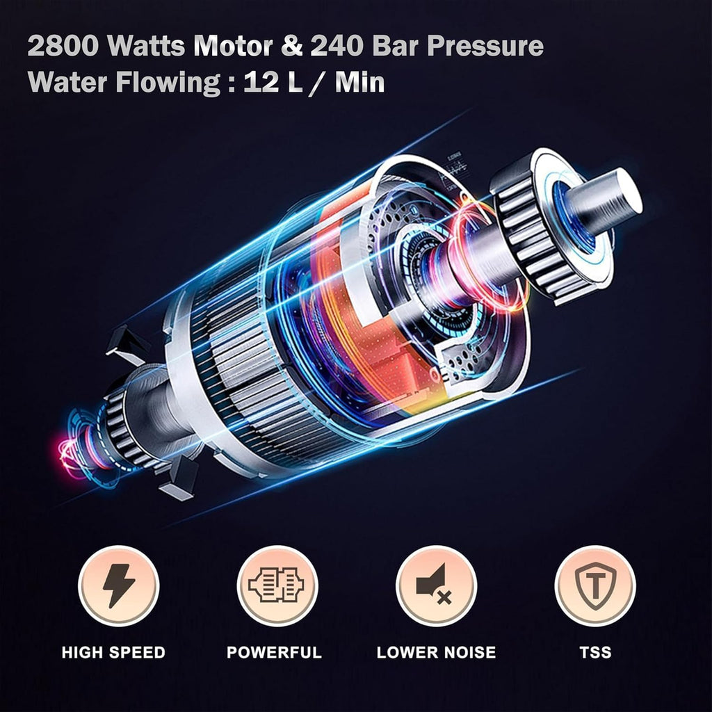 - Powerful High Pressure Washer for Car & Home – Equipped with a 2800W induction motor and 240 bar pressure, this pressure washer for car delivers superior cleaning performance, removing tough dirt and grime from various surfaces.
