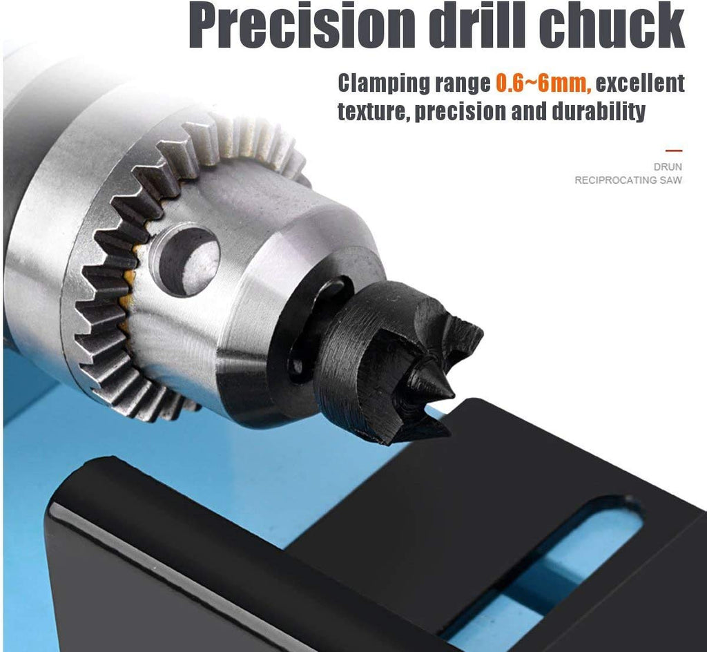- ★Precision drill chuck: Processing lathe pure steel structure ultra-precision drill chuck, clamping range is 0.6-6.5mm, drilling speed can reach up to 7000 rpm, stepless speed regulation, precision and durability.